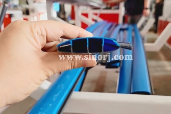PC共擠型材生產(chǎn)線試機(jī)進(jìn)行中