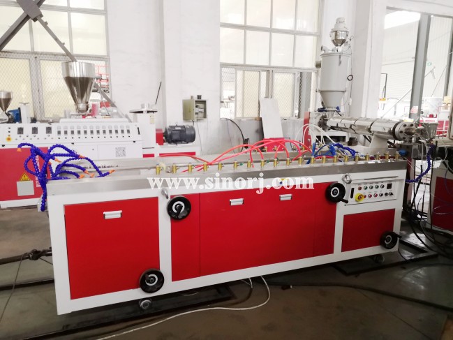PC共擠型材生產(chǎn)線工廠內(nèi)試機(jī)進(jìn)行中